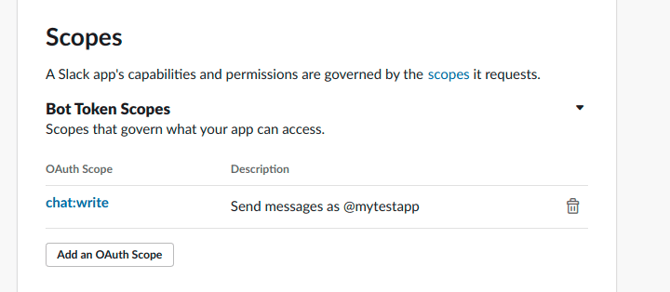 For security purposes, Slack introduced a new Bot Token that lets you set different permissions, limiting access to specific endpoints. The new Bot Token scope must include the chat:write permission, which can be found under OAuth & Permissions. The classic bot token is still available for use.
