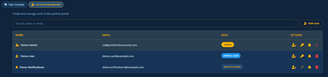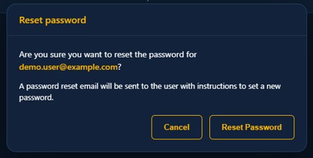 . Then, press the Reset password button to have a new password sent to the registered email address. If you reset the password for your own account (admin role), you will be logged out of the partner portal and will need to log in again using the new password.
