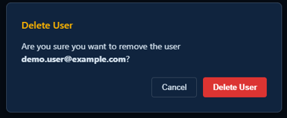 . You will be prompted to confirm the deletion before the user is permanently removed from the system. If you delete a user with the portal user role, they will also receive an email notification informing them that their access to the portal has been revoked.