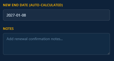 - New end date: This date is automatically calculated based on the selected contract term and the current end date.