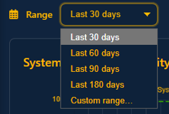 You can adjust the data displayed in any product usage, engagement matrix, or churn risk indicator graph by selecting your preferred date range from the dropdown menu located at the top of each graph. To define a custom timeframe, choose the “Custom range” option within the same dropdown.