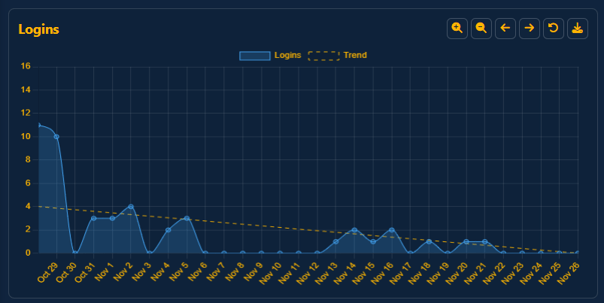 For each graph, you can further tailor your view by zooming in or out, panning horizontally to review different time periods, resetting the display to the selected range, or downloading the graph as a PNG file.
