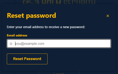 If you have forgotten your password, click the “Reset Password” link on the login page. A pop-up window will appear where you can enter your email address. After you click the “Reset Password” button, new login credentials will be sent to your email.