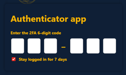Once the setup is complete, you can now log in using the 6-digit code generated in the authenticator app. You also have the option to stay logged in for 7 days by checking the corresponding box before you enter the code.
