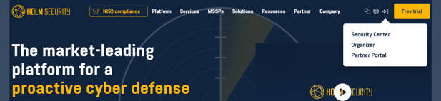 - Alternatively, go to our main website https://www.holmsecurity.com, click on the profile icon in the top right corner next to “Free trial,” and select “Partner Portal” from the dropdown menu.