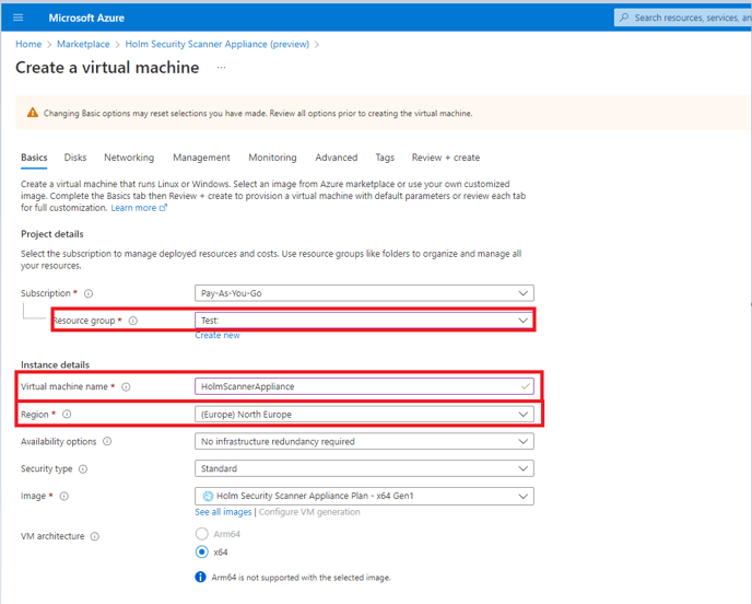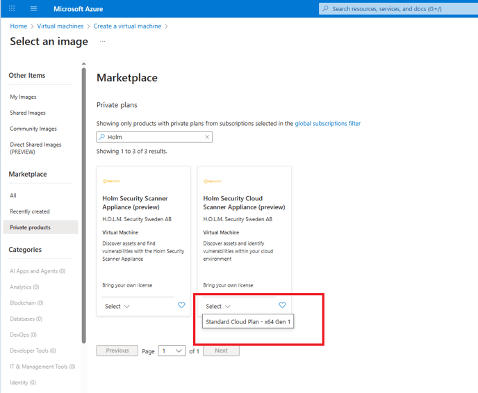 - Choose the image named Holm Security Cloud Scanner Appliance (preview) and click select.